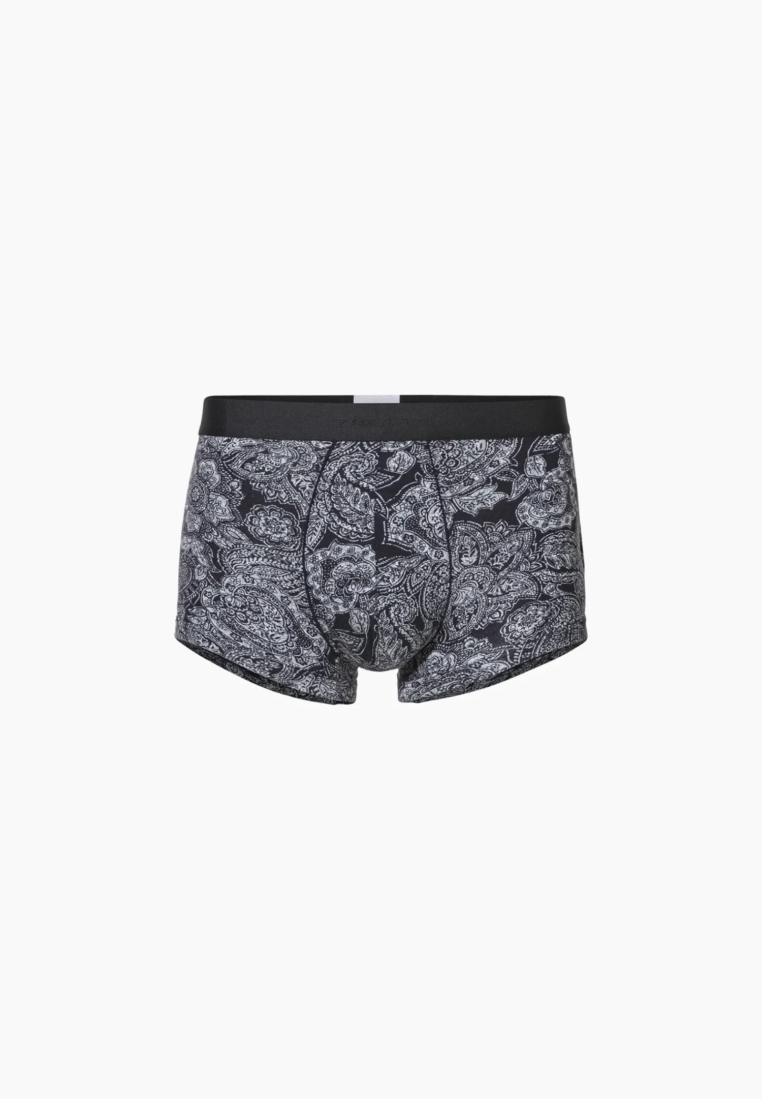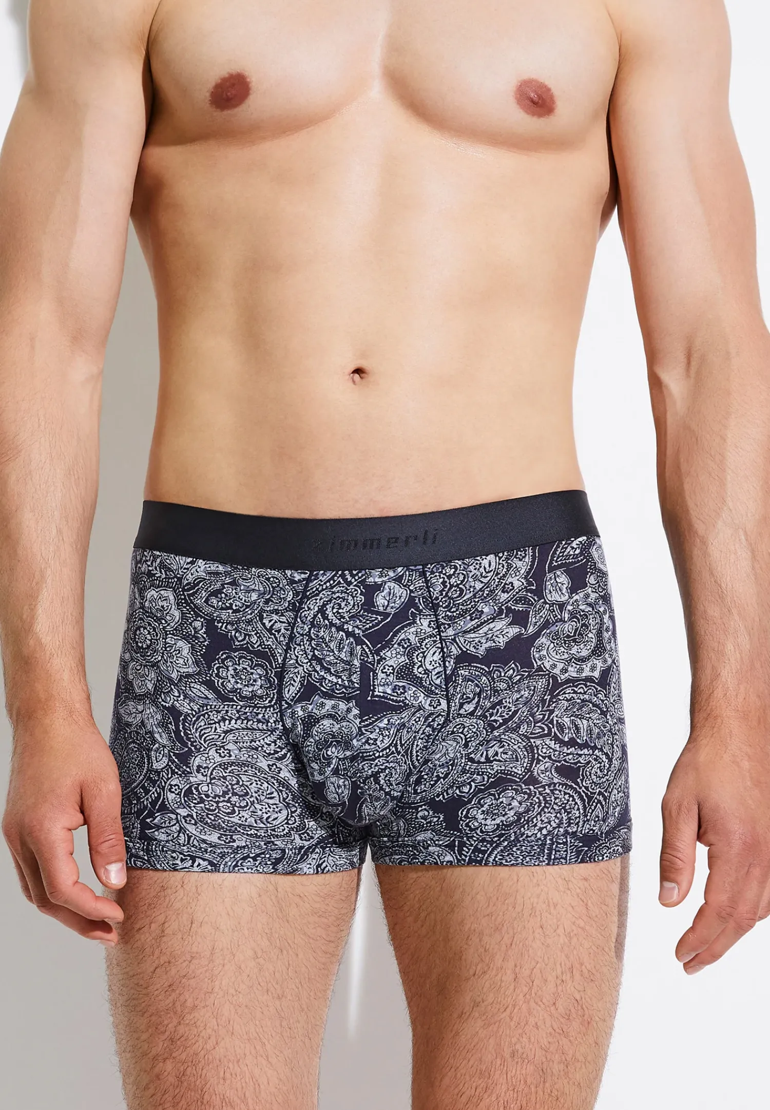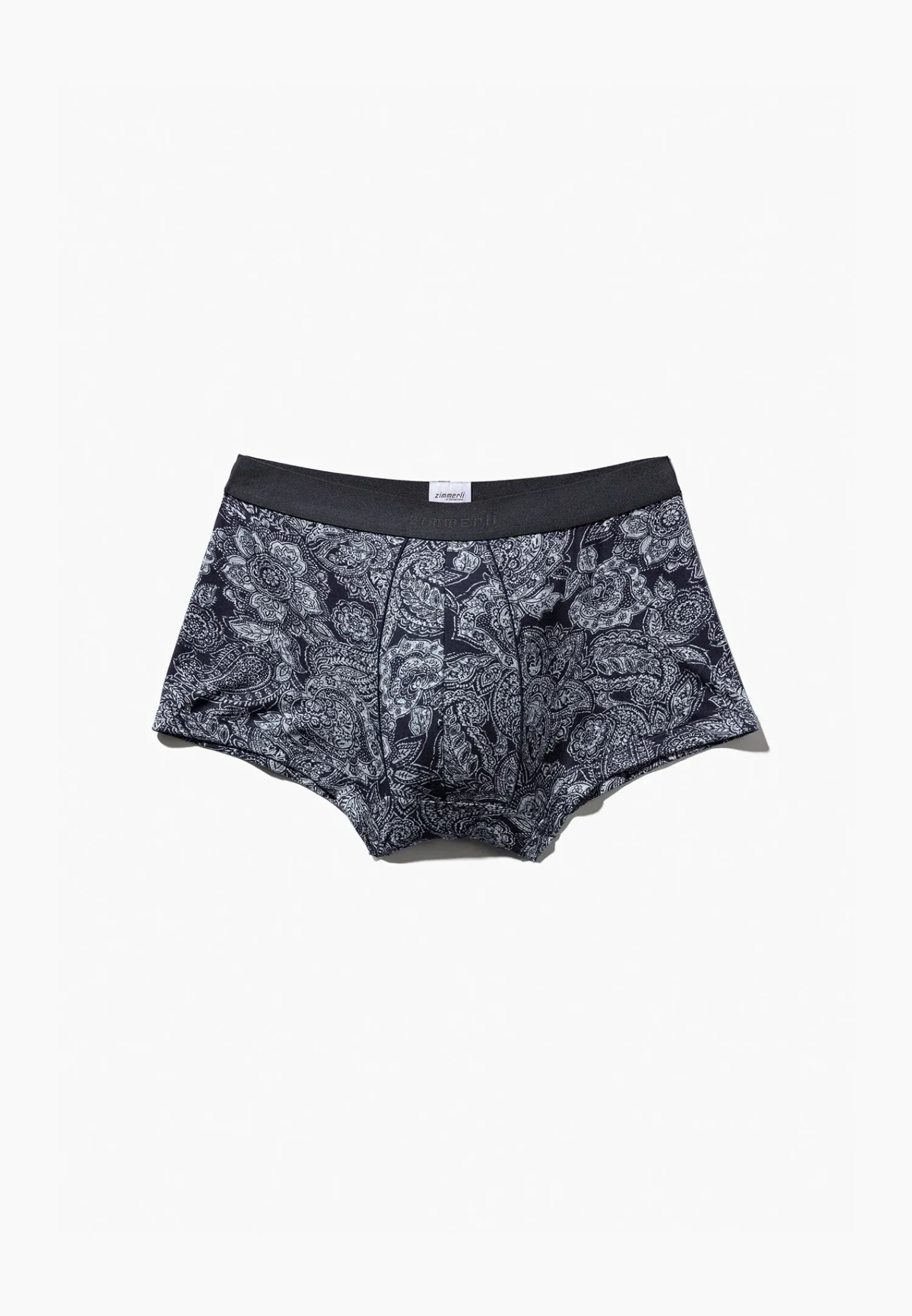 Uberragend Weich Und Temperaturausgleichend Mit Dekorativem Print. Die Boxer Briefs Fur Herren Besitzen Ein Elastisches Bundband In Dunkelblau Mit Einem Gewebten Zimmerli Logo Auf Der Vorderen Mitte. Der Schrittbereich Ist Mit Einer Paspel In Der Farbe Des Bundbands Eingefasst – Fur Einen Luxuriosen Style Und Besondere Ausstrahlung. Der Druck Zeigt Ein Detailreiches Und Sehr Lebendiges Paisleymotiv, Welches In Sich Selbst Mit Zwei Weiteren Farbtonen Variiert. Der Schnitt Ist Korpernah Und Enganliegend Ausgefuhrt. Die Beinausschnitte Sind Mit Einem Passenden Stoffband Eingefasst.