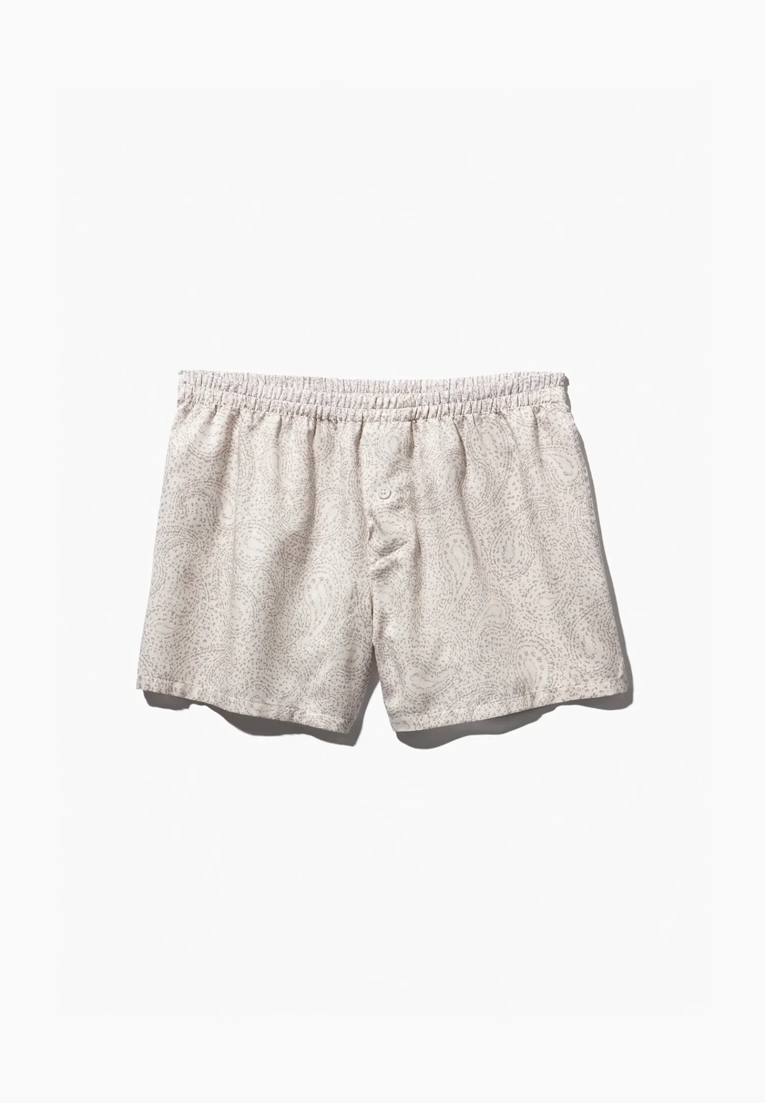 Seidig-Weiche Baumwolle Wird Zu Einem Angenehm Glatten Stoff Gewebt Und Mit Kontrastierendem Paisley-Design Mit Punkte-Struktur Oder Einem Floralen Motiv Mit Aztekischen Elementen Bedruckt. Die Boxershorts Fur Herren Uberzeugen Durch Den Verdeckten, Elastischen Bund. Dieser Wird Mit Zwei Knopfen Verschlossen. Ausserdem Besitzen Die Boxer Shorts Einen Dekorativen Eingriff, Der Mit Einem Knopf Verschlossen Wird. Der Schnitt Ist Locker Und Bequem, Der Webstoff Ist Fest Und Nicht Elastisch. Die Beinlange Ist Etwas Kurzer Als Bei Anderen Zimmerli Of Switzerland Boxershorts.