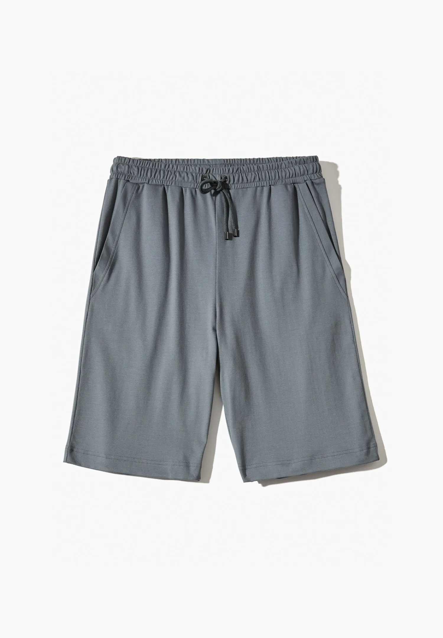 Feiner, Dreidimensional Gewebter Stoff Und Urbane Styles Gehen Eine Harmonische Fusion Ein. Die Kurze Hose Fur Herren Uberzeugt Durch Das Elastische Bundband Mit Kordelzug Und Die Schragen Seitentaschen. Diese Sind Mit Einem Schmalen Band Eingefasst. Die Enden Der Kordel Sowie Die Kordelosen Sind Mit Grauen Metall-Elementen Versehen, Auf Denen Das Zimmerli Of Switzerland Logo Eingraviert Wurde. Der Schnitt An Sich Ist Locker Und Bietet Angenehmen Tragekomfort.