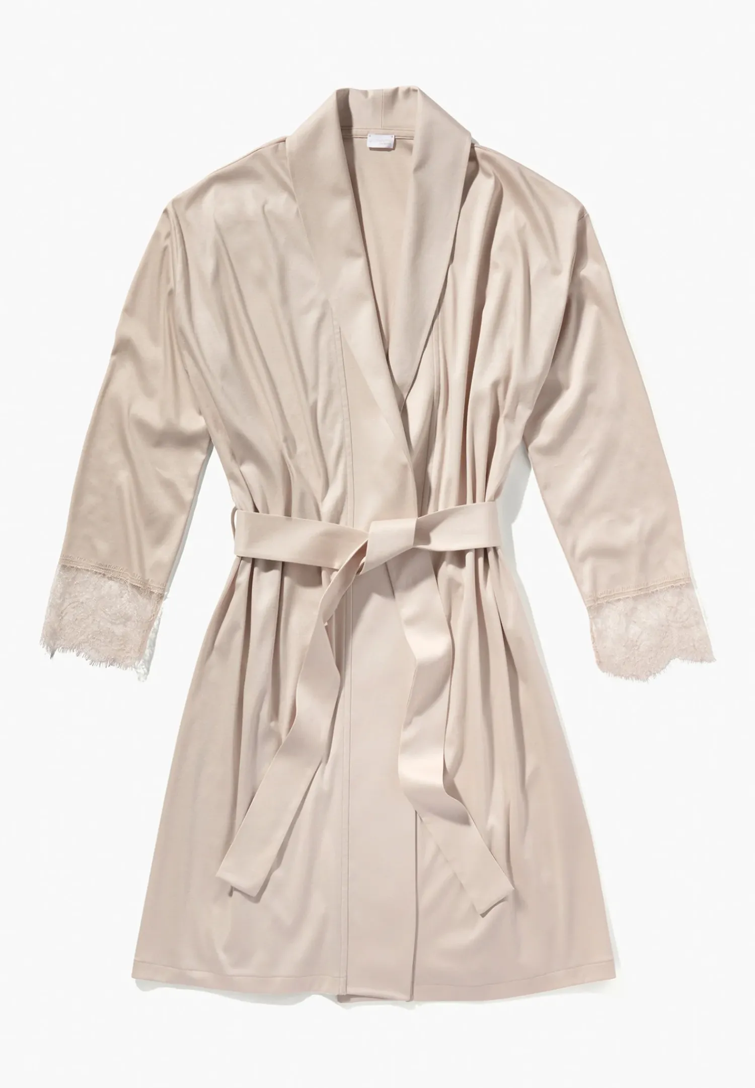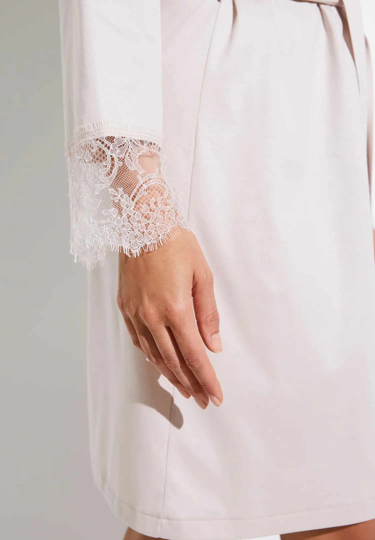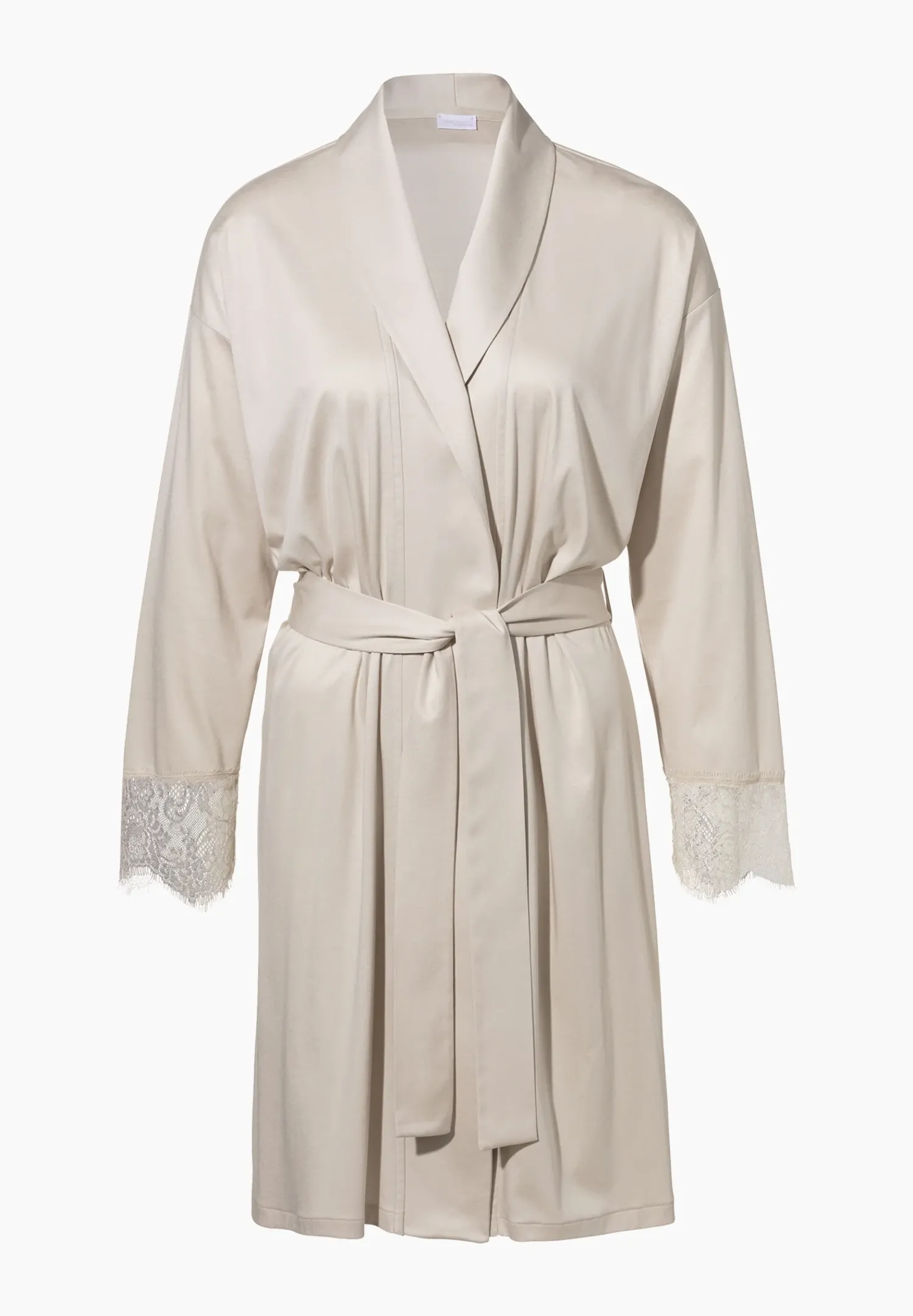 Klare Linien Mit Sinnlichen Details. Der Damen-Morgenmäntel Mit Langen Armeln Wird Mit Dem Zugehorigen Gurtelband Mit Einem Knoten Oder Schleife Geschlossen. Der Tiefe V-Ausschnitt Ist Variabel, Lasst Sich Einmal Umschlagen Und Passt Sich Ihren Bedurfnissen An. Luxuriose, Breite Spitzendetails Am Armelsaum Sorgen Fur Etwas Extravaganz. Die Leichte Eye-Lash-Spitze Zeigt Florale Details Sowie Paisley-Elemente. Die Uberschnittenen Schultern Tragen Dazu Bei, Dass Sich Diese Robe Einfach Perfekt Auf Der Haut Anfuhlt. Die Naht Am Saum Ist Nahezu Unsichtbar Ausgefuhrt.