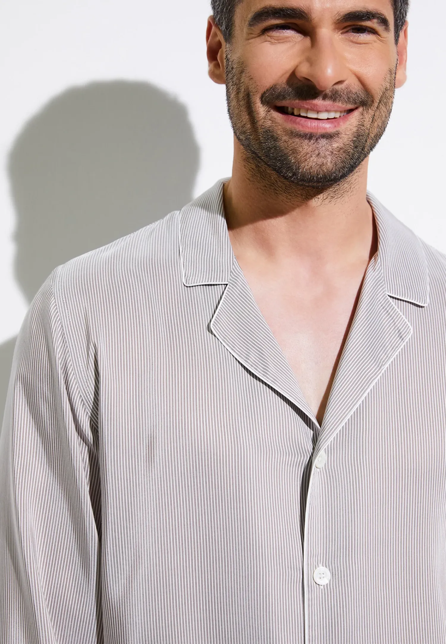 Der Herren-Schlafanzug Aus Der Linie Pinstripes Besteht Aus Luxurios Gewebtem Stoff In Leichtem Streifendesign. Die Dunnen Langsstreifen Bilden Gemeinsam Mit Dem Glatten, Anschmiegsamen Stoff Ein Perfektes Paar.