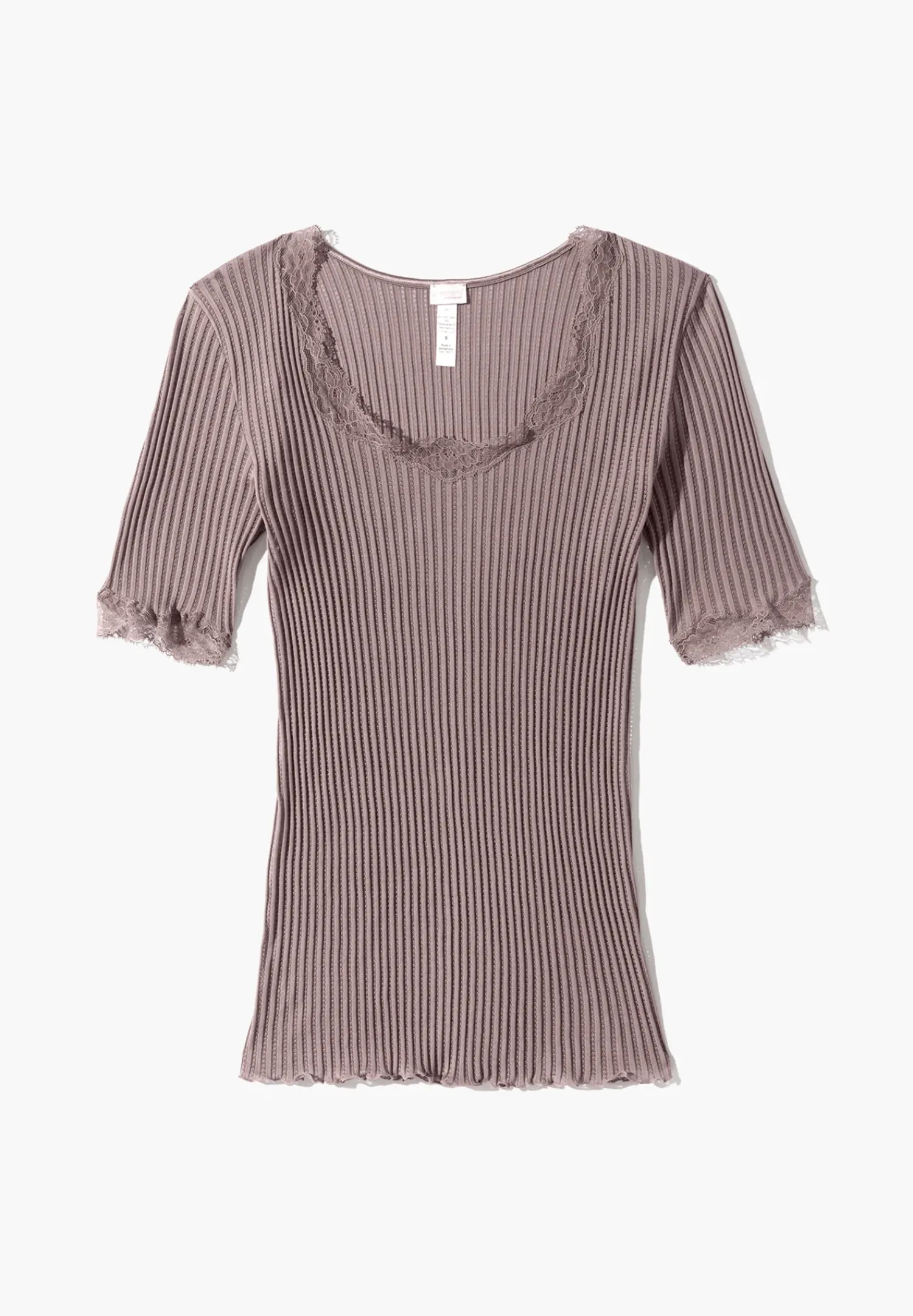 In Den Luftigen Ajoure-Rippen Verstecken Sich Kleine Kunstwerke. Filigrane Musterungen Durchwirken Die Reine Baumwolle Dieses Shirts, Das Von Zarter Spitze Aus Calais Gekront Ist: Luxuriose Handarbeit, Die In Der Saisonfarbe Dark Shadow Auch Perfekt Daruber Getragen Werden Kann.