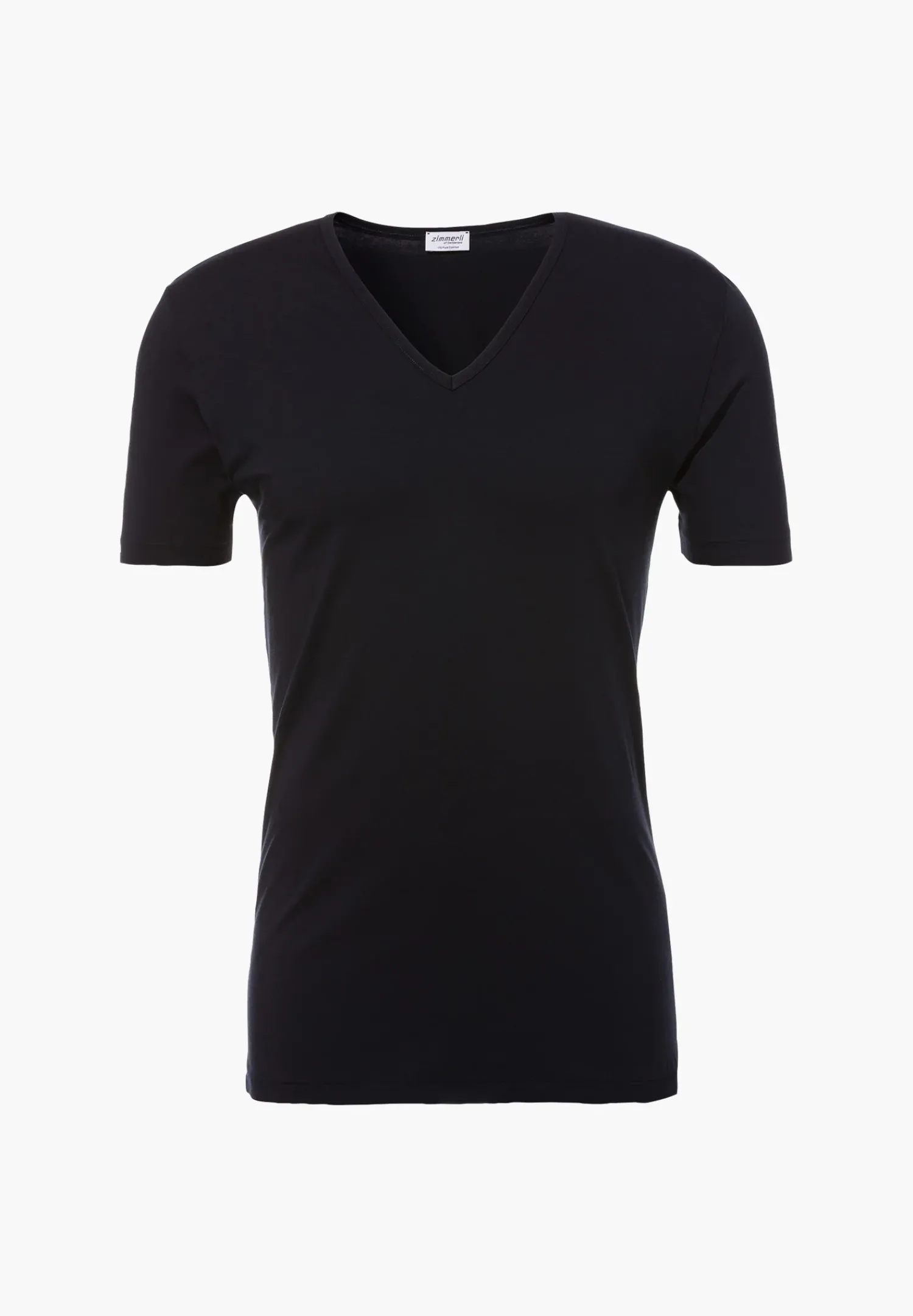 Dank Der Perfekten Passform Und Eines Ultrafeinen Jersey Bietet Das Shirt Short Sleeve V-Neck Puren Komfort Fur Jeden Tag. Das Erlesene Pima-Baumwollgarn Sorgt Fur Einen Edlen Glanz Und Weichen Griff, Wahrend Ein Kleiner Anteil Elasthan Eine Perfekte Flexibilitat Garantiert, Sodass Sich Der Stoff Sanft An Den Korper Schmiegt. Perfekt Verarbeitete Saume Sowie Ein Eleganter V-Ausschnitt Runden Das Vielfaltig Kombinierbare Oberteil Ab Und Machen Es Fur Drunter Und Druber Perfekt. Neben Den Klassikern Weis Und Schwarz Ist Das Kurzarm-Shirt Auch In Einem Kraftigen Blau Erhaltlich Und Kann Perfekt Zu Den Passenden Briefs Der Pure Comfort-Kollektion Kombiniert Werden.