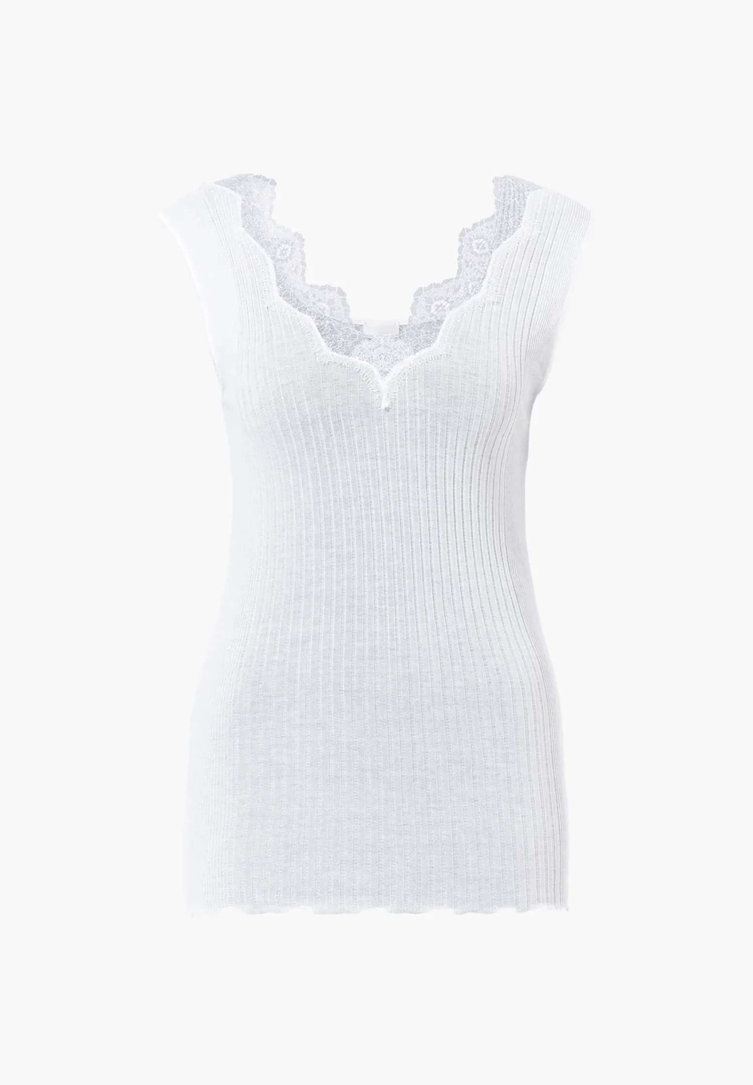 Einzigartig Dunner Richelieu-Feinrippstoff Mit Zwei Unterschiedlichen Breiten Rippen, Ausgeschmuckt Mit Floraler, Zarter Eye-Lash-Spitze. Das Top Mit Breiten Tragern Fur Damen Uberzeugt Durch Einen Gewellten, Tiefen V-Ausschnitt, Der Mit Passender Wimpernspitze Besetzt Ist. In Der Mitte Des Ausschnitts Uberkreuzen Sich Die Spitzendetails. Der Ruckenausschnitt Sowie Die Armausschnitte Werden Von Einem Glanzenden Band Eingefasst. Die Der Saum Ist Durch Eine Besondere Nahtechnik Leicht Gekrauselt.