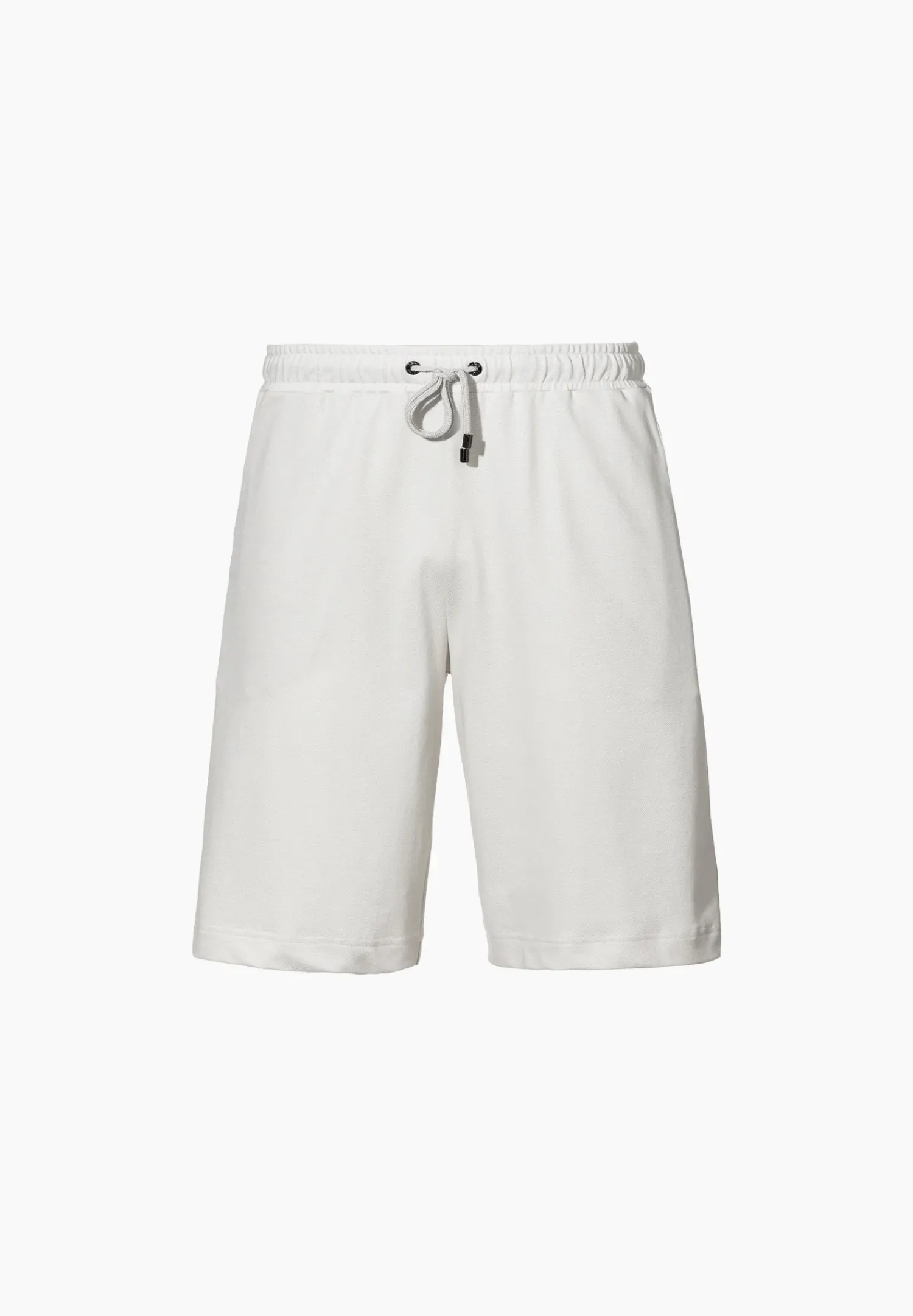 Feiner, Dreidimensional Gewebter Stoff Und Urbane Styles Gehen Eine Harmonische Fusion Ein. Die Kurze Hose Fur Herren Uberzeugt Durch Das Elastische Bundband Mit Kordelzug Und Die Schragen Seitentaschen. Diese Sind Mit Einem Schmalen Band Eingefasst. Die Enden Der Kordel Sowie Die Kordelosen Sind Mit Grauen Metall-Elementen Versehen, Auf Denen Das Zimmerli Of Switzerland Logo Eingraviert Wurde. Der Schnitt An Sich Ist Locker Und Bietet Angenehmen Tragekomfort.