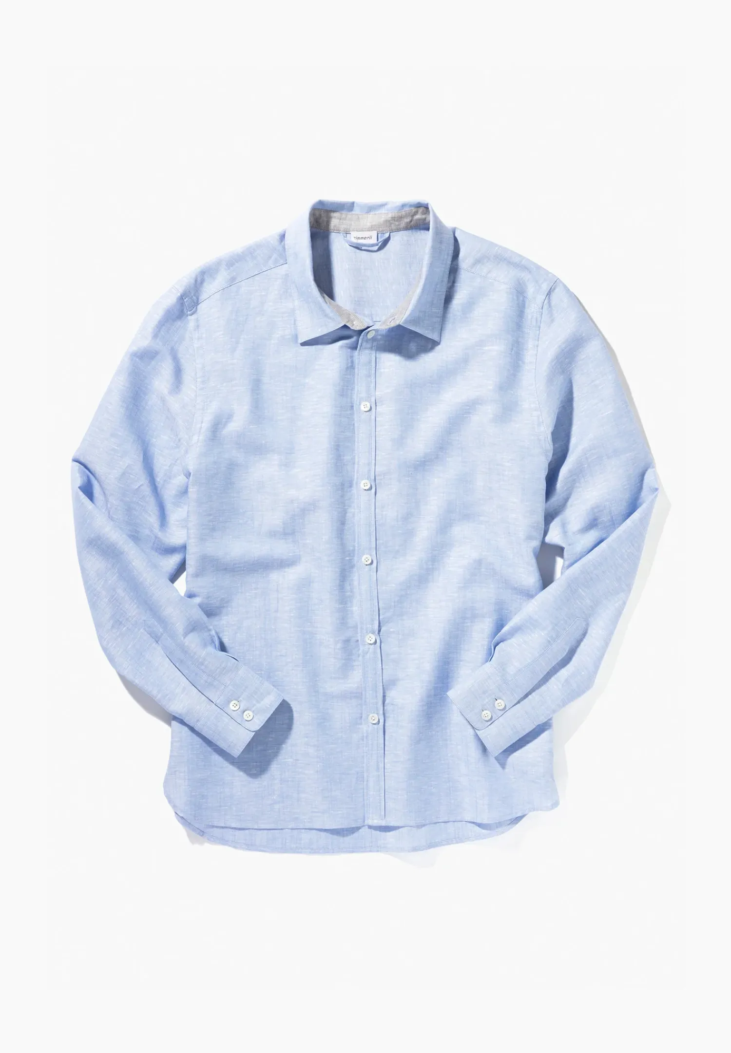 Das Herren-Hemd Aus Der Linie Linen Blend Besteht Aus Leinen Und Baumwolle. Die Stoffstruktur Zeigt Die Typische Maserung Von Leinenfasern In Leicht Variierender Dicke. Der Dezente Schimmer Und Die Besondere Haptik Machen Diesen Style Aus.