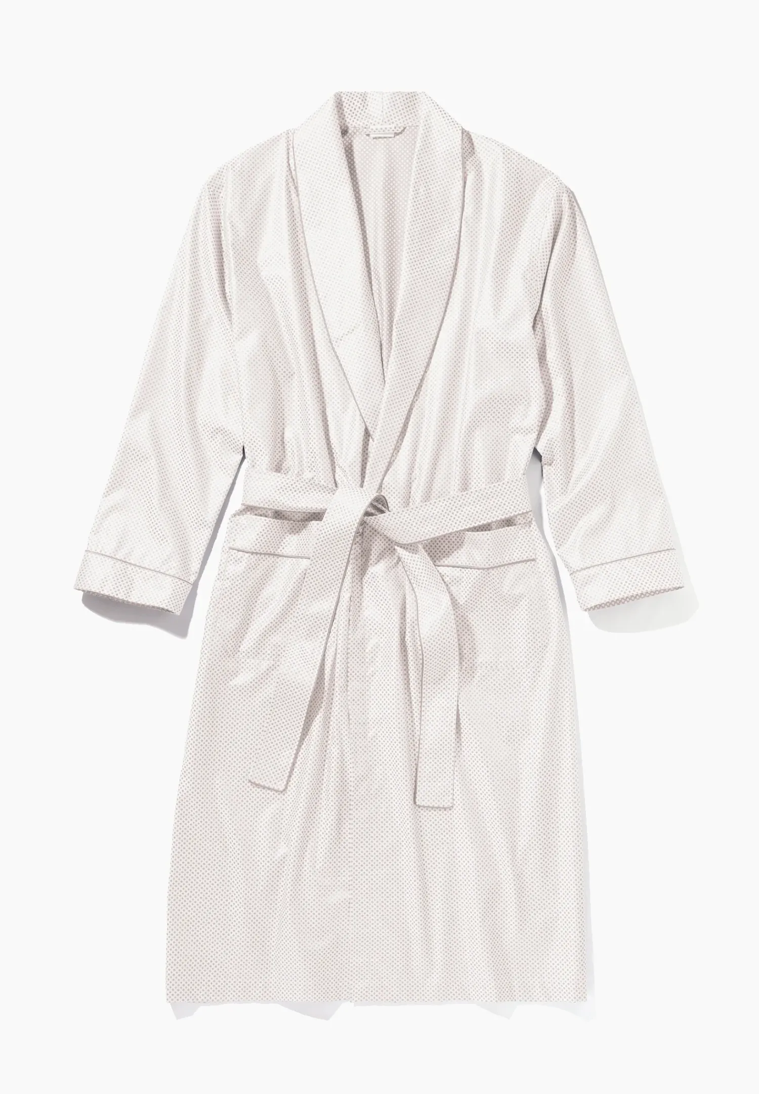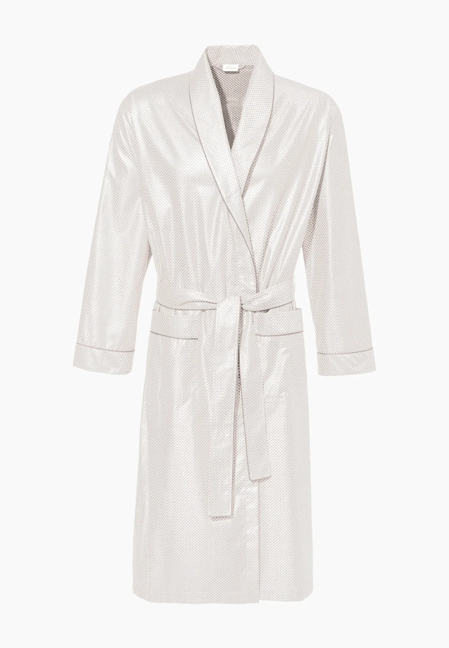 Angenehm Glatt, Mit Dezentem Glanz Und Mit Eingewebten, Geometrischen Strukturelementen. Der Morgenmäntel Mit Langen Armeln Fur Herren Uberzeugt Als Kleines Highlight Mit Dezenten Paspelierungen. Die Robe Besitzt Einen Schalkragen Und Wird Mit Dem Beiliegenden Gurtelband Via Knoten Oder Schlaufe Geschlossen. Der Gurtel Ist Ebenso Wie Der Kragen Mit Der Paspel Abgesetzt – Dasselbe Gilt Fur Die Beiden Armelenden Sowie Fur Die Auf Der Vorderseite Platzierten, Viereckigen Fronttaschen. Der Schnitt Ist Locker Und Bequem, Der Stoff Ist Fest Und Nicht Elastisch.