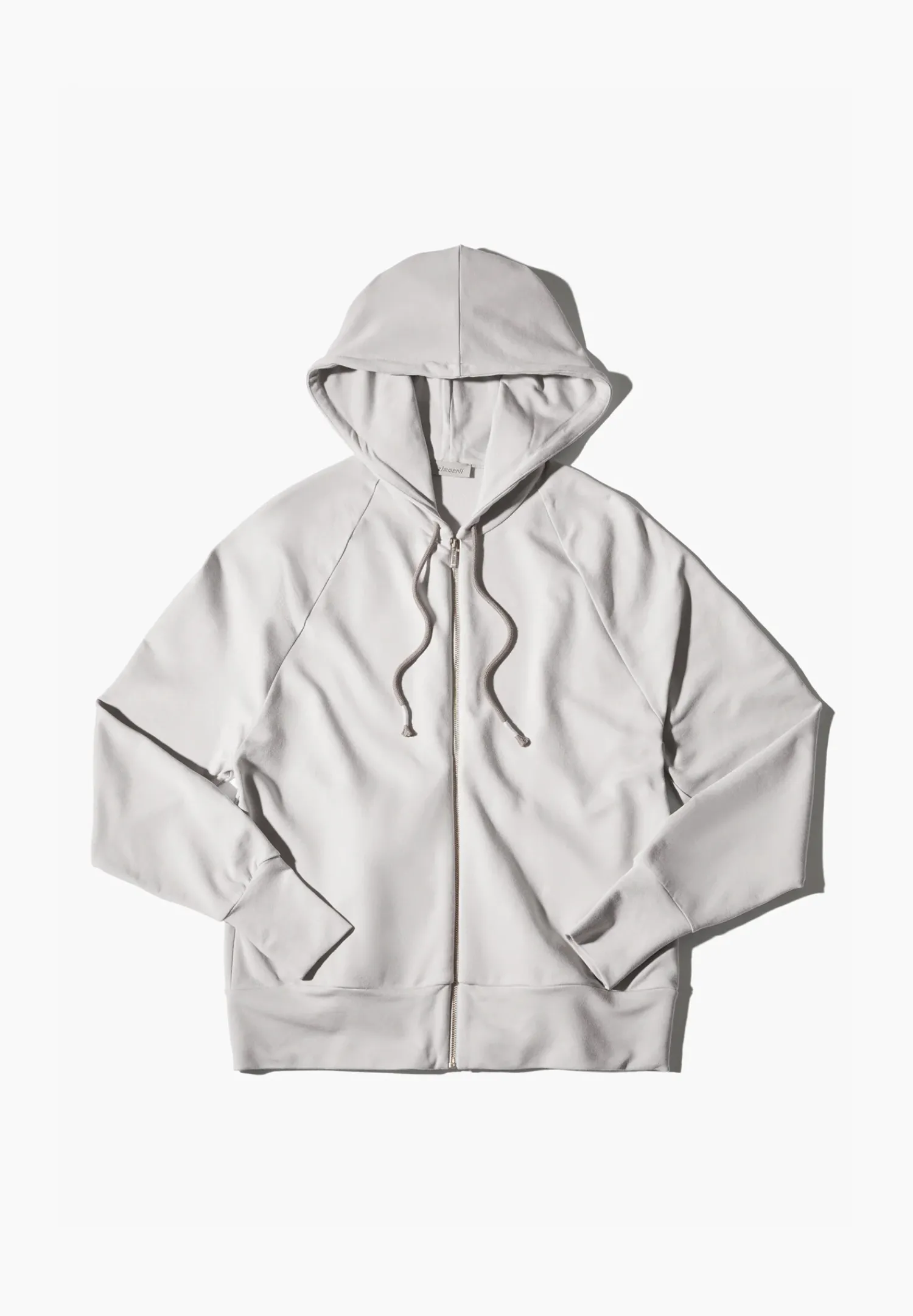Weicher French Terry Trifft Auf Puristische Designdetails Und Eine Sportlich-Eleganten Style. Der Kapuzenpullover Fur Damen Uberzeugt Durch Seine Klare Linienfuhrung Und Die Angenehm Luftige Kapuze Mit Kordel Sowie Zwei Seitliche Nahttaschen Und Einen Durchgehenden Reissverschluss. Der Goldene Zipper Besteht Aus Metall Mit Eingraviertem Zimmerli Of Switzerland Logo, Die Kordelenden Sind Fransig Und Mit Einem Goldenen Faden Eingefasst. Die Armel Sind Durch Die Besondere Schnitttechnik Ohne Schulternaht Ausgefuhrt Und Schliessen Am Saum Mit Zwei Breiten Bundchen Ab. Der Schnitt Ist Bequem, Locker Und Bietet Viel Bewegungsspielraum.