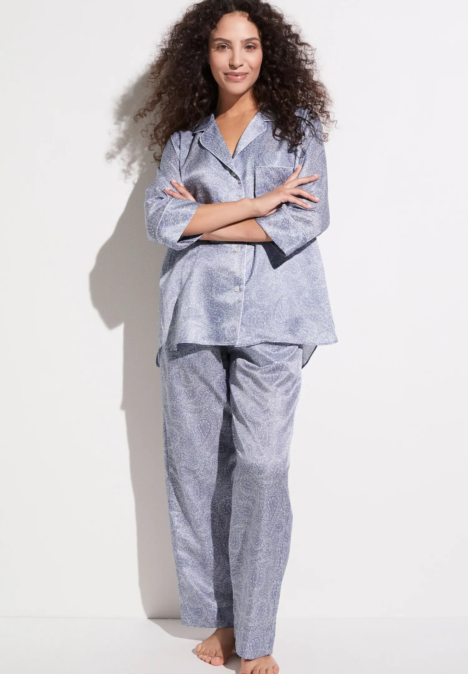 Der Damen-Schlafanzug Aus Der Linie Cotton / Silk Besteht Aus Luxurios Gewebtem Baumwollstoff Mit Seidenanteil Und Paisley-Print. Die Moderne Interpretation Des Klassischen Paisley-Musters Sowie Der Glatte, Anschmiegsame Stoff Bilden Ein Perfektes Paar.