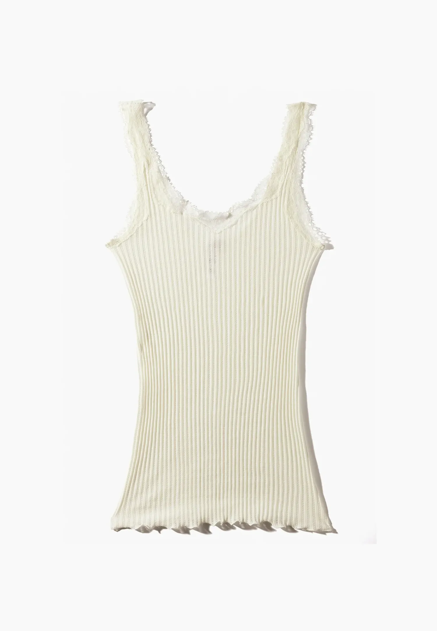 In Den Luftigen Ajoure-Rippen Verstecken Sich Kleine Kunstwerke. Filigrane Musterungen Durchwirken Die Reine Baumwolle Dieses Tops, Das Von Zarter Spitze Aus Calais Gekront Und Ohne Seitennahte Verarbeitet Ist. So Viel Luxus Ist Nur Mit Exquisiter Handarbeit Moglich Und Kann Perfekt Auch Daruber Getragen Werden.